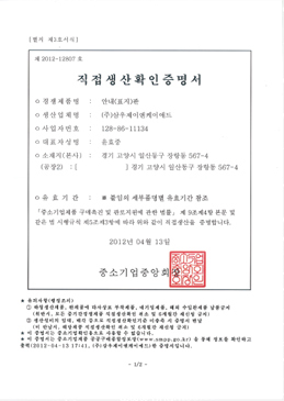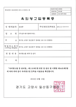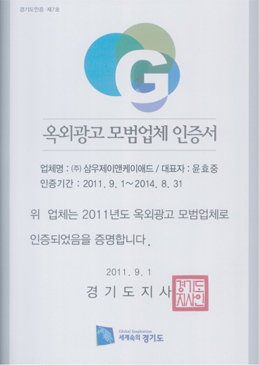 홈회사소개회사인증서 회사인증서 옥외광고 모범업체 인증서 옥외광고업등록증 킨텍스 지정협력 업체등록증 전시사업자 등록증 사업자등록증 공장등록증 벤처기업확인서 산업디자인 전문회사 신고필증 직접생산확인증명서 직접생산확인증명서